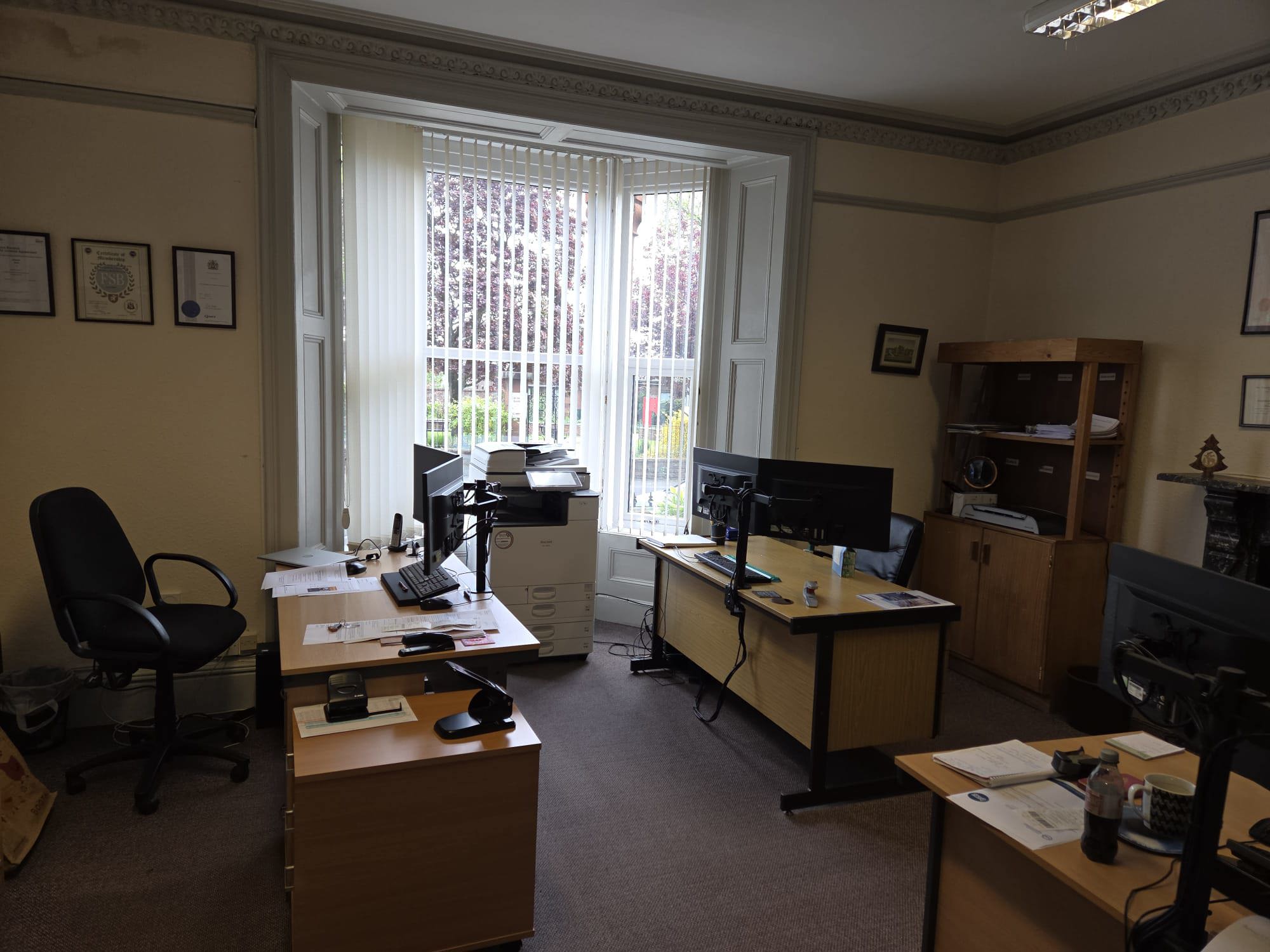This property is a 19th century, mid-terraced stone building arranged across 4 storeys plus basement. The offices are across ground and part first floor with storage space in the basement. The remainder of the first floor has been converted into a flat, with the second and third floor having been converted into a maisonette. Both the flat and maisonette have been sold off on long leaseholds.